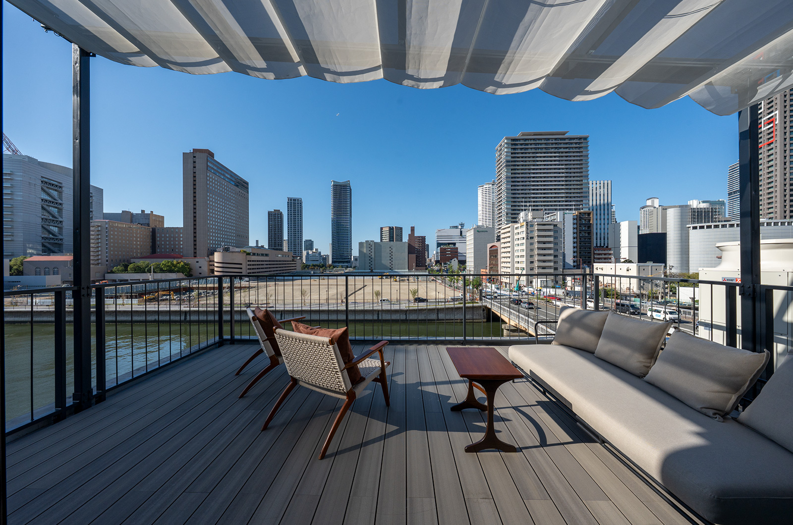 目の前には土佐堀川が流れ、開放感あふれる水辺の景観が、日々の業務に心地よい余白を与える。